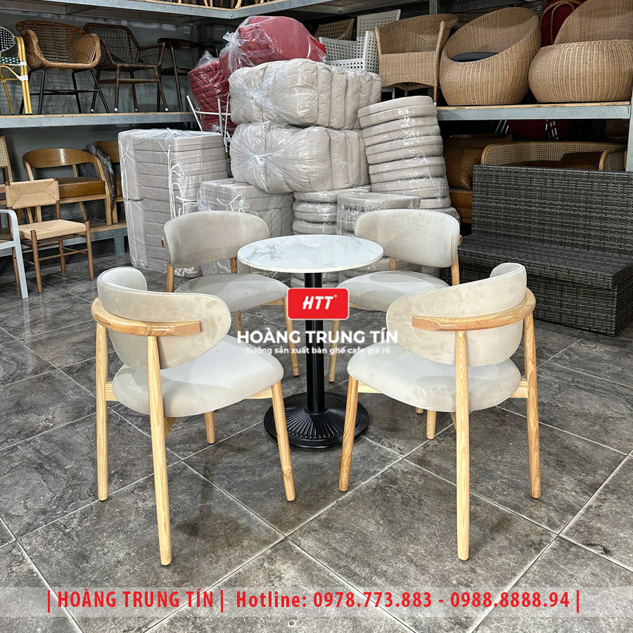 Bàn ghế cafe gỗ nệm cao cấp HTT52