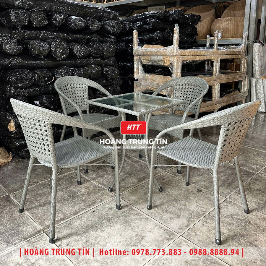 - Bàn đan nhựa mây có kính, kích thước vuông 60cm