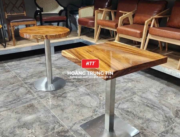Bàn cafe chân inox mặt gỗ me tây HTT30