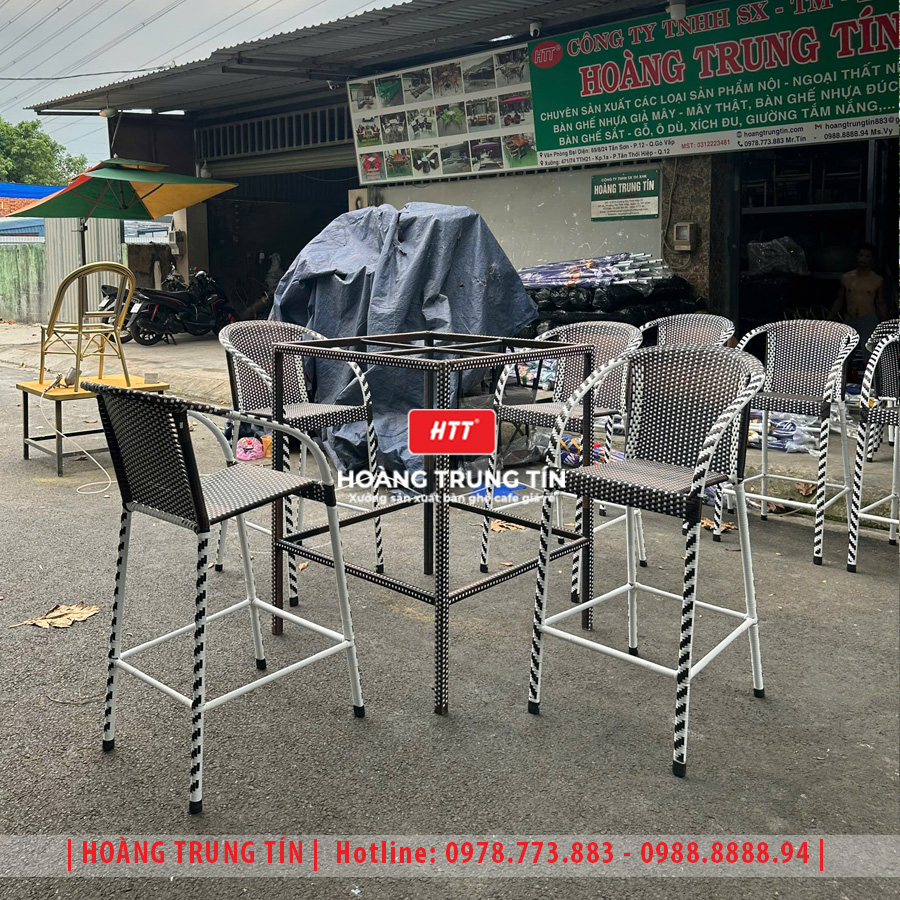 Bàn ghế bar đan nhựa giả mây HTT02