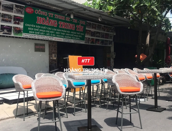 Bàn ghế bar đan nhựa mây ngoài trời HTT004