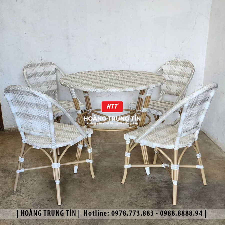Bàn ghế cafe đan nhựa mây cao cấp HTT010