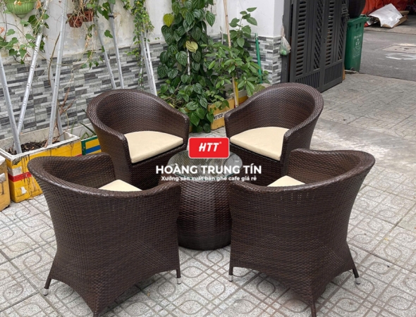 Bàn ghế cafe đan nhựa mây cao cấp HTT041