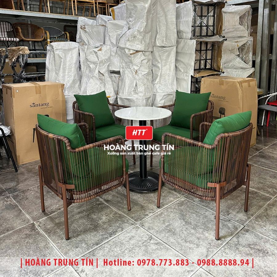 Bàn ghế cafe đan nhựa mây cao cấp HTT064