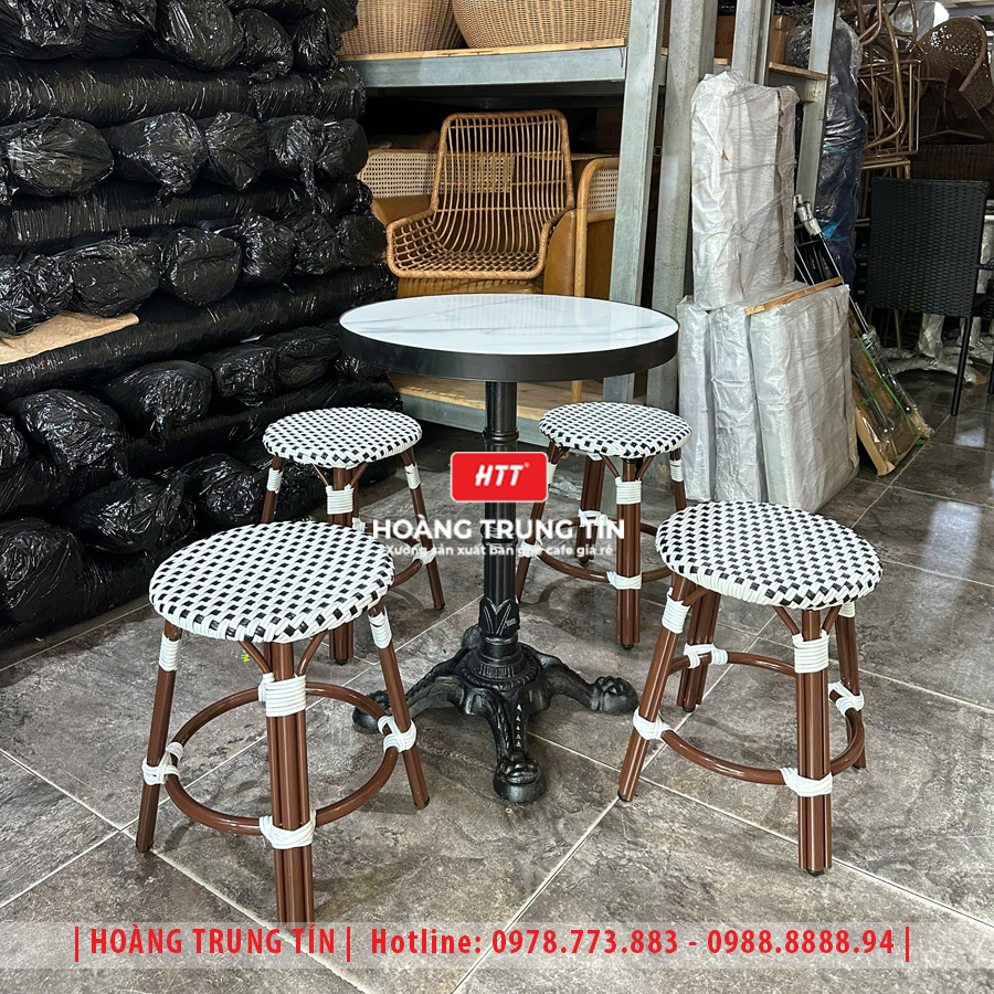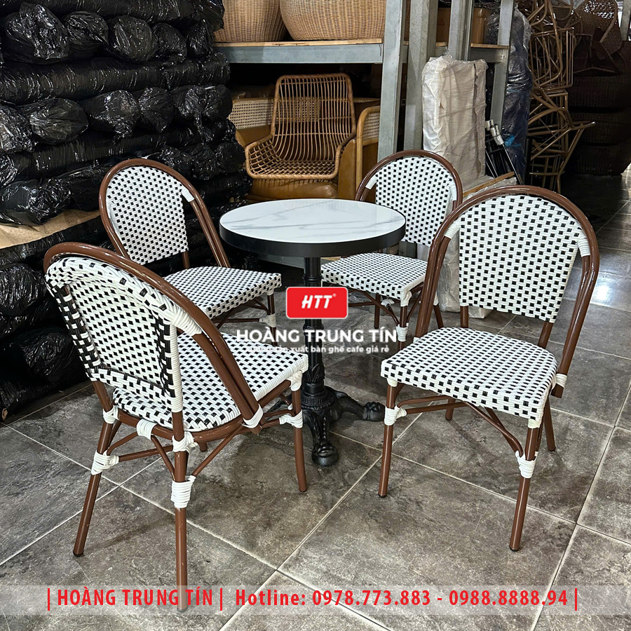 Bàn ghế cafe đan nhựa mây cao cấp HTT067