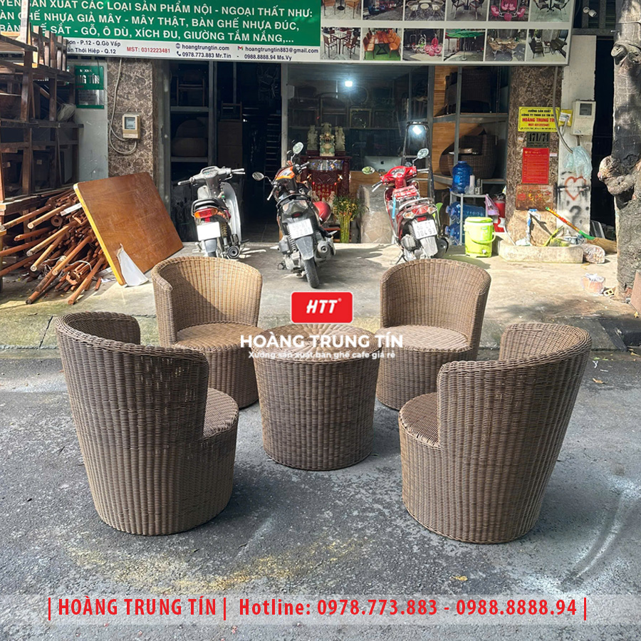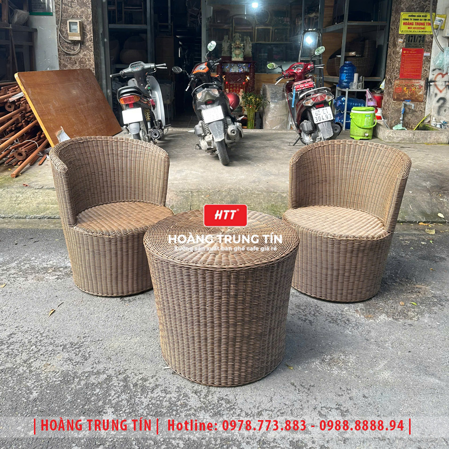 Bàn ghế cafe đan nhựa mây cao cấp HTT071