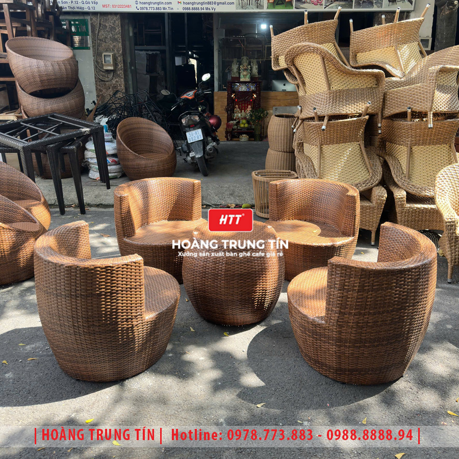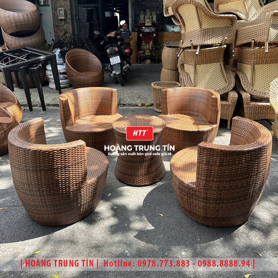 Bàn ghế cafe đan nhựa mây cao cấp HTT073