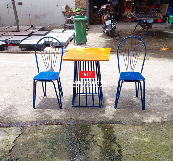 Bàn ghế cafe gỗ chân sắt ngoài trời