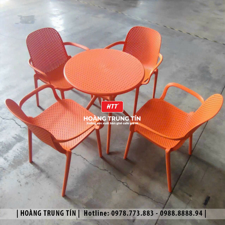 Bàn ghế cafe nhựa đúc nguyên khối HTT04