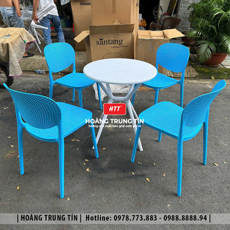 Bàn ghế cafe nhựa đúc nguyên khối HTT13