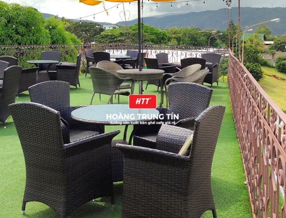 Bàn ghế nhà hàng đan nhựa mây HTT022