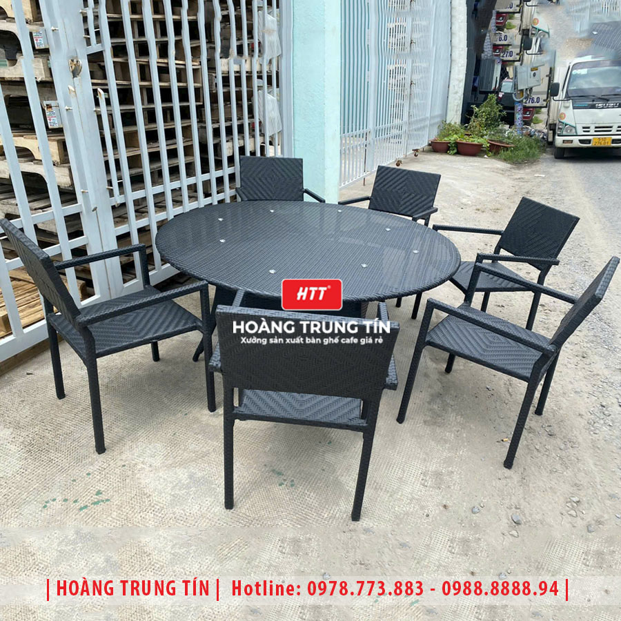 • Bàn ghế nhà hàng đan nhựa mây HTT037
