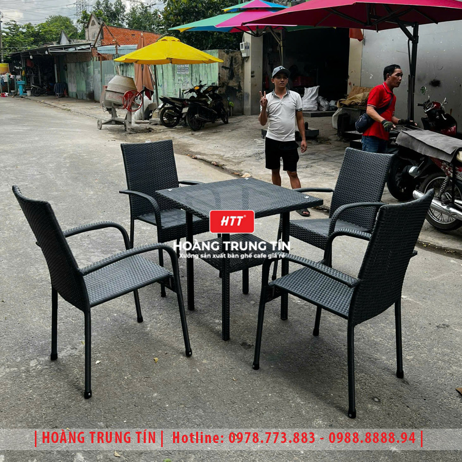 • Bàn ghế nhà hàng đan nhựa mây HTT043