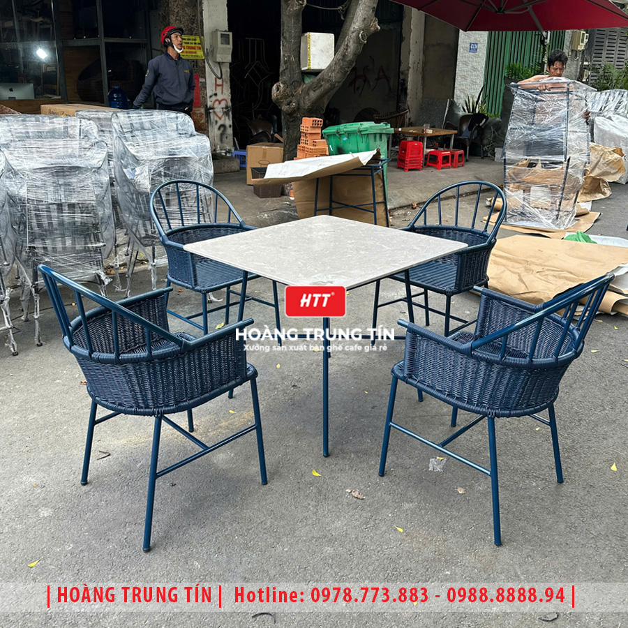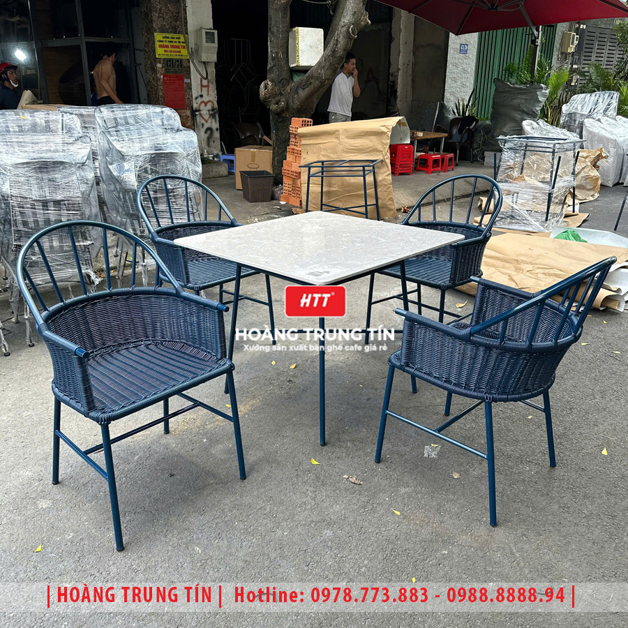 Bàn ghế nhà hàng đan nhựa mây HTT044