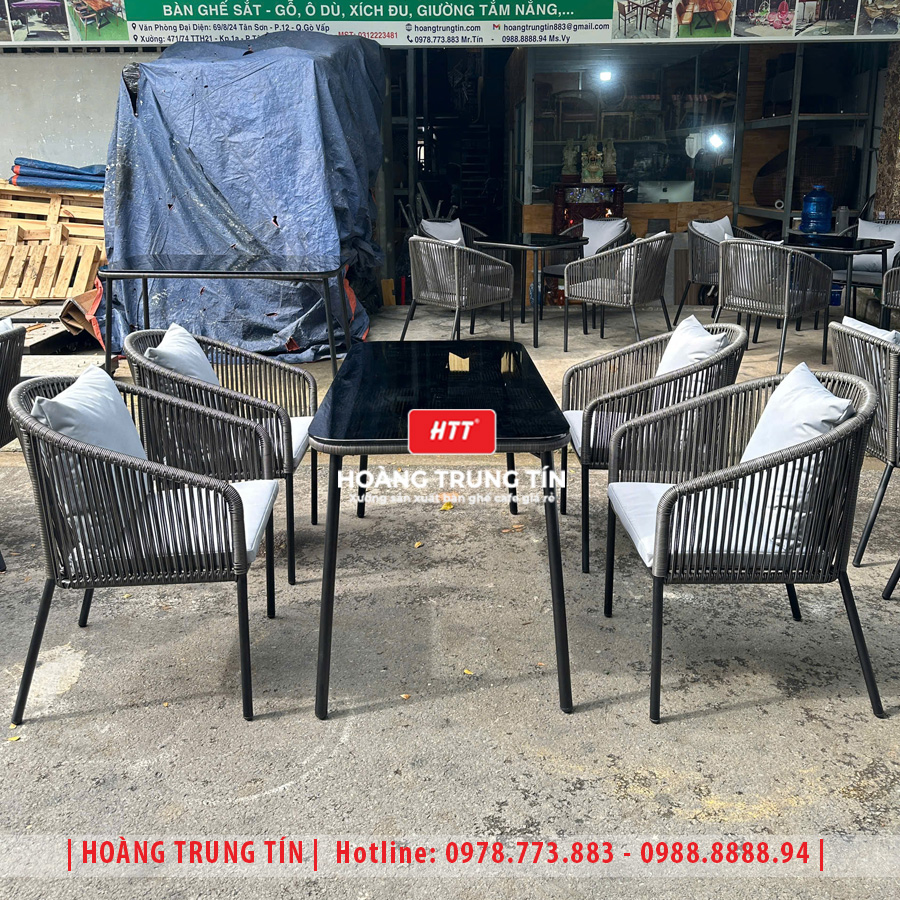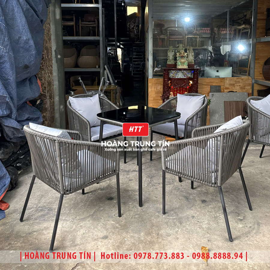 • Bàn ghế nhà hàng đan nhựa mây HTT046
