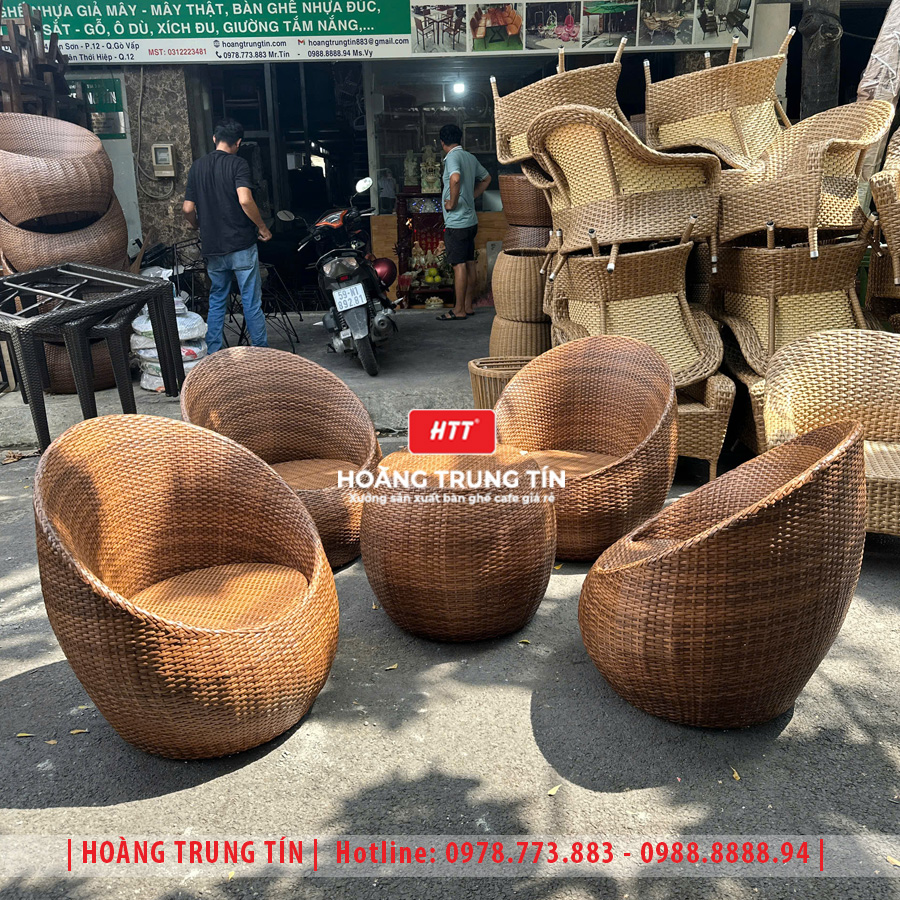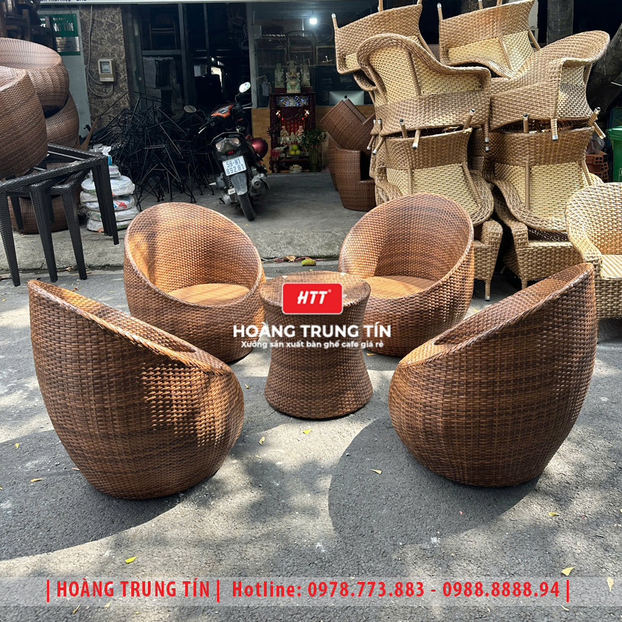 Bàn ghế sofa trứng đan nhựa mây HTT069