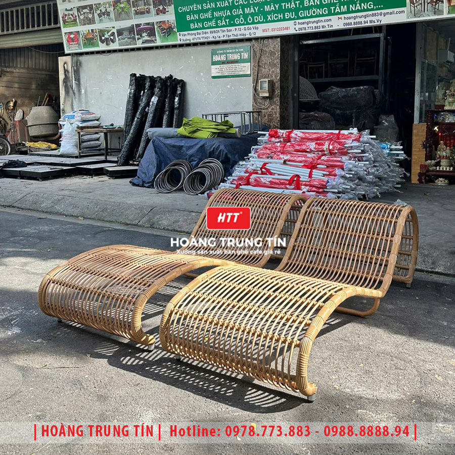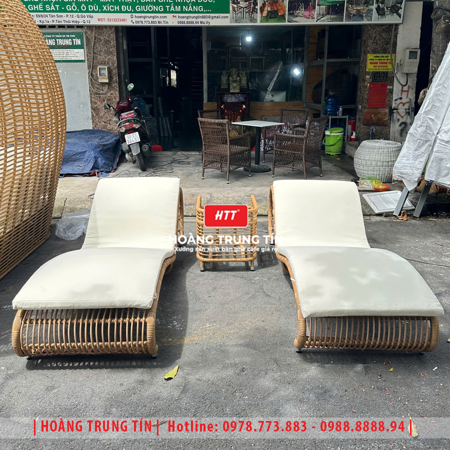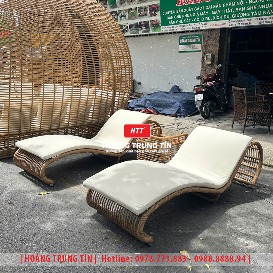 • Giường tắm nắng đan nhựa giả mây HTT13